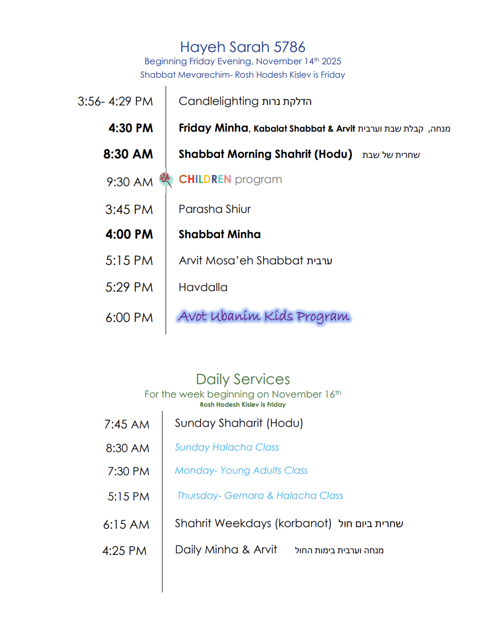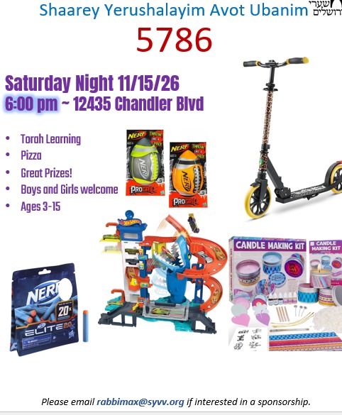 Our Avot Ubanim Youth Program offers a special opportunity for fathers and their children to bond through Torah learning every Saturday night, 30 minutes after Shabbat ends, during the winter…